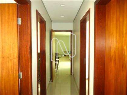 Possui lavabo; área íntima composta por 04 quartos sendo 03 suítes com armários, uma delas tem dois closets; cozinha com bancada em granito, armários e coifa; área de serviço com armários e DCE.